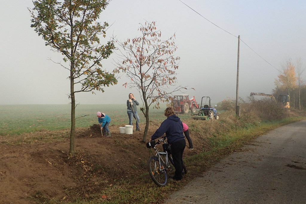 Sázení aleje, čištění požární nádrže, úklid kapličky
